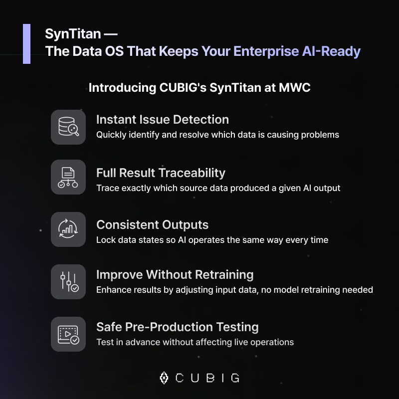 At MWC 2026, CUBIG is showcasing SynTitan — a Data OS that locks your enterprise data into a permanent AI-Ready state.