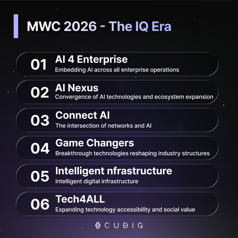 Under the banner of The IQ Era, this year’s MWC presents the AI-driven industry shift through six key pillars: