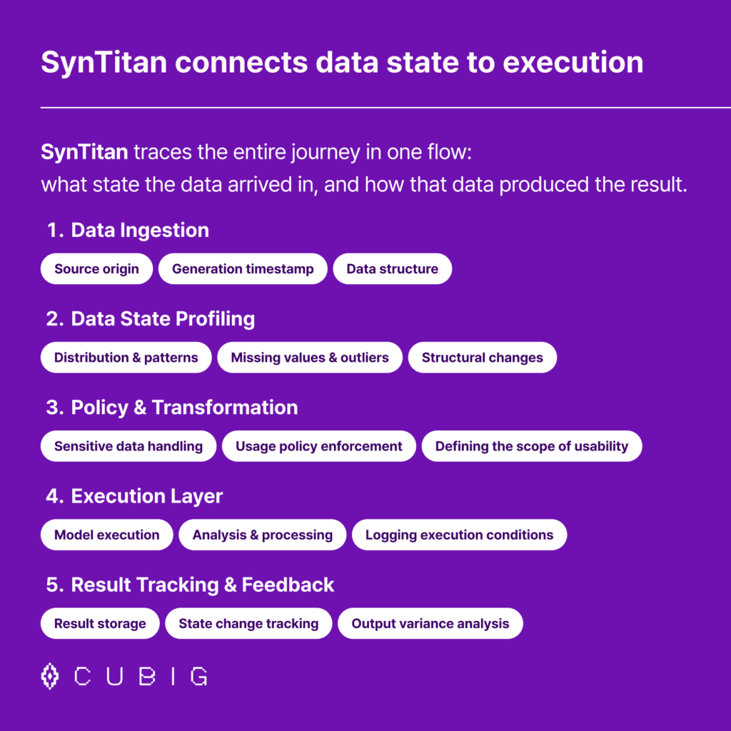 — check the data state, not the model. SynTitan connects data state to AI execution in a single traceable flow.