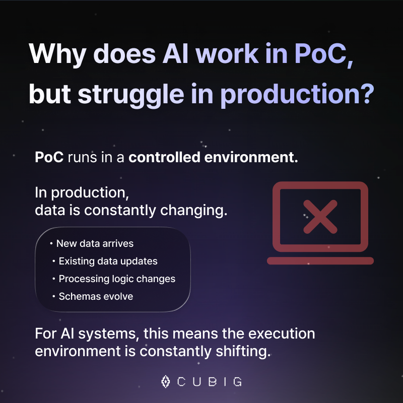 However, the situation changes once AI moves beyond experiments and enters real production environments. Models that perform well during PoC (Proof of Concept) often start to produce inconsistent results in production.